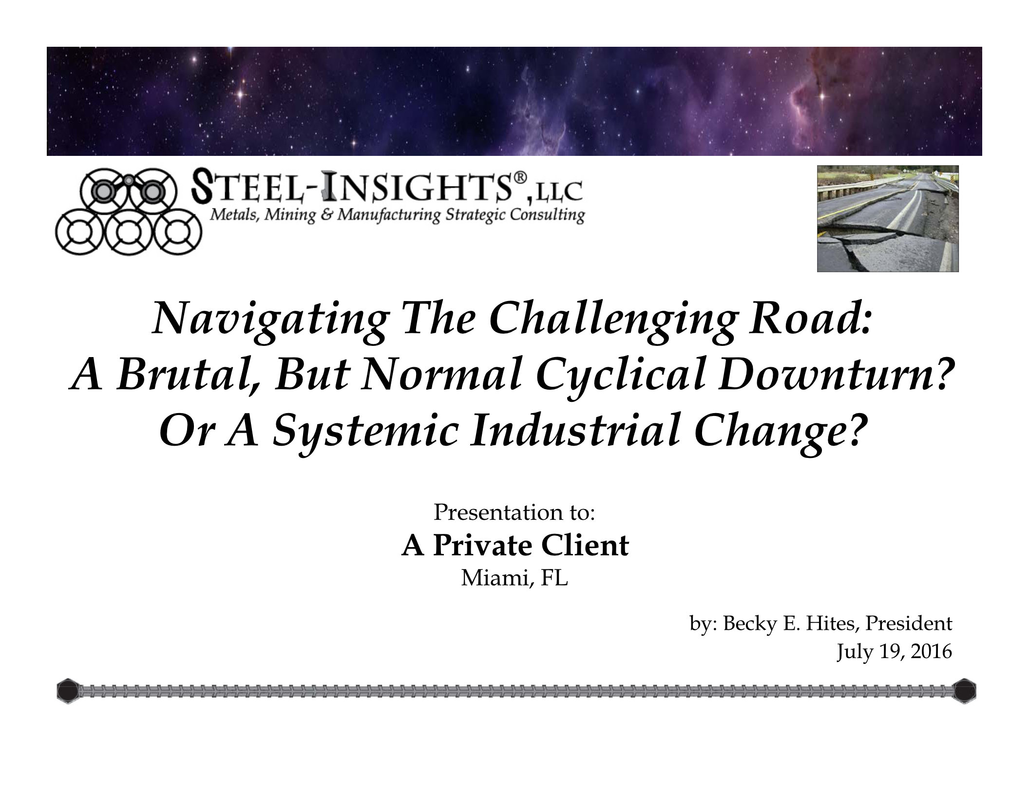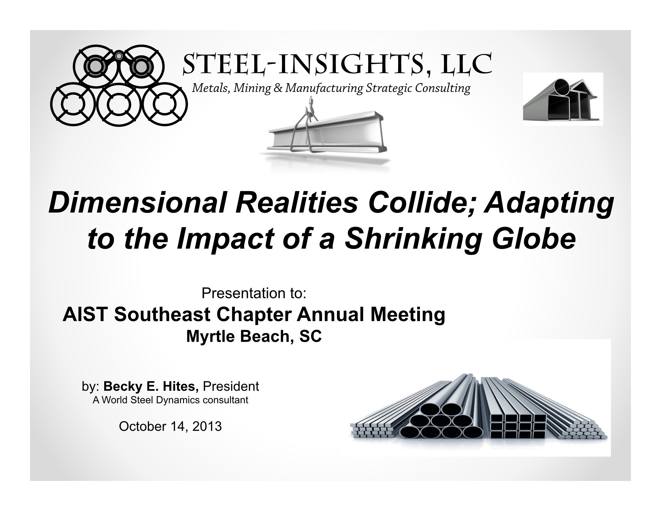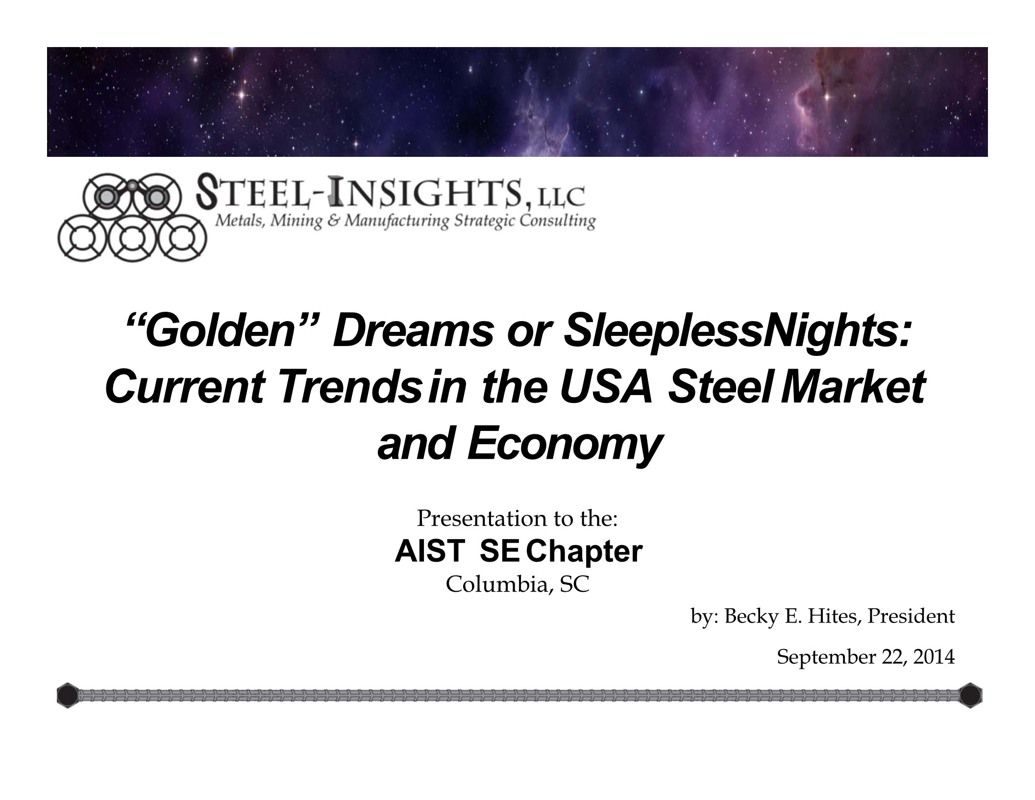 Golden Dreams or Sleepless Nights, Current Trends in the USA Steel Market and Economy, AIST SE Chapter, Columbia, Sep 2014