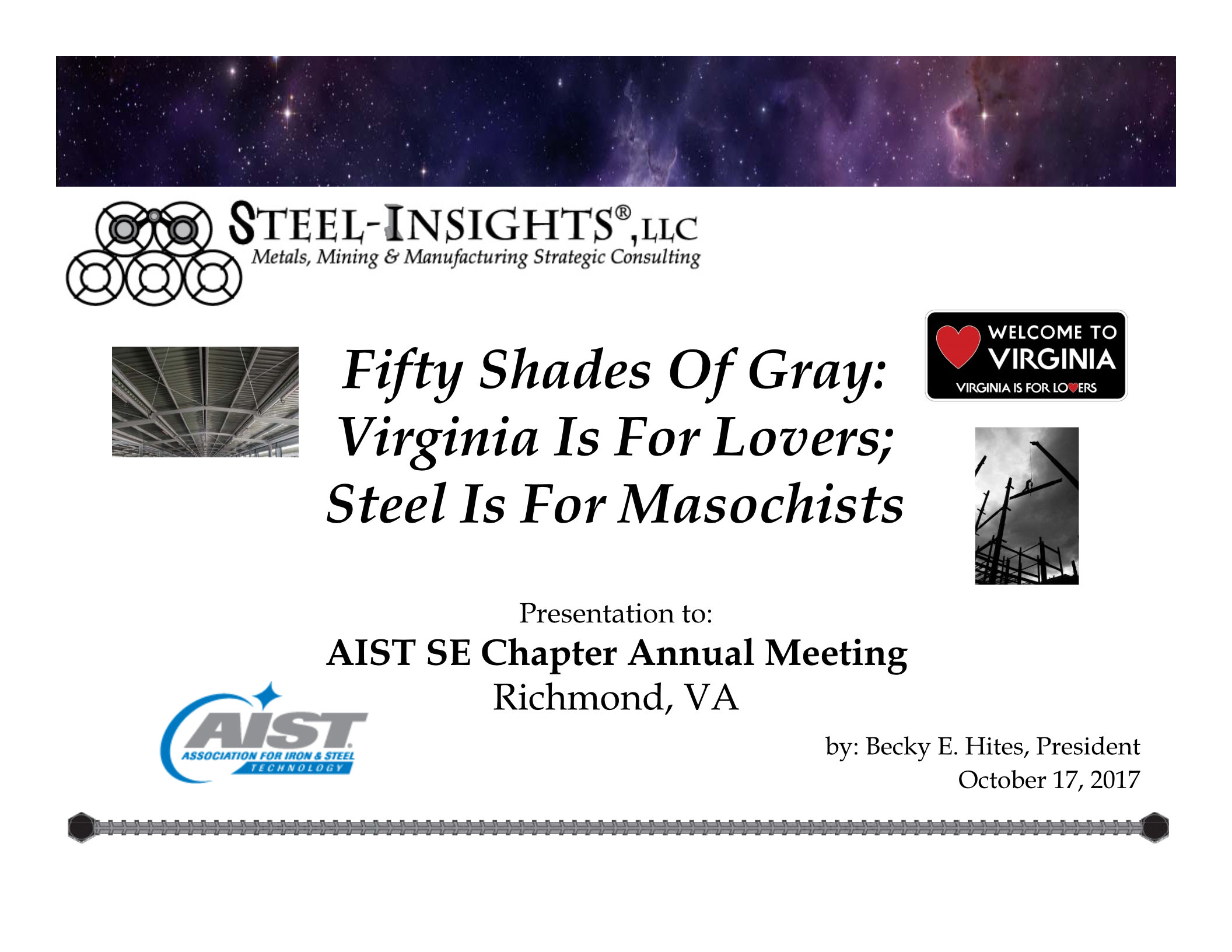 Fifty Shades Of Gray: Virginia Is For Lovers; Steel Is For Masochists, AIST SE Chapter Meeting, Richmond, VA, Oct 2017