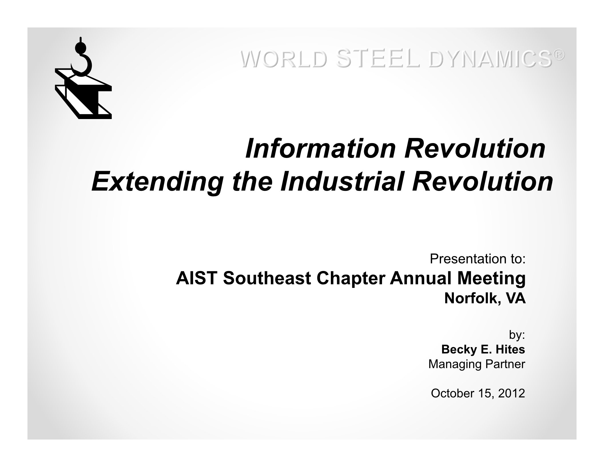 Information Revolution Extending the Industrial Revolution, AIST SE Chapter Annual Meeting, Norfolk, VA, Oct 2012