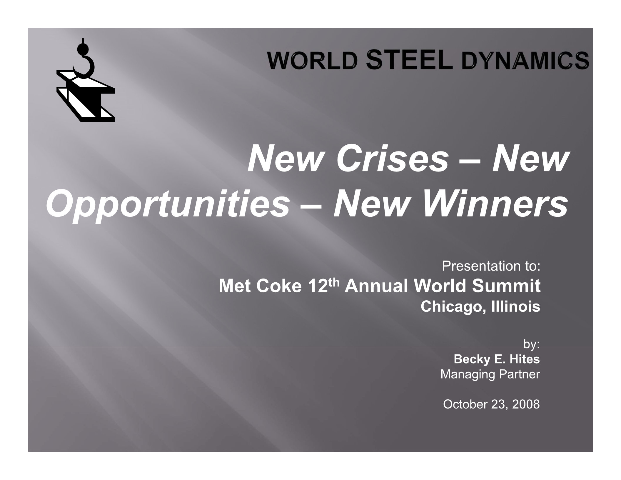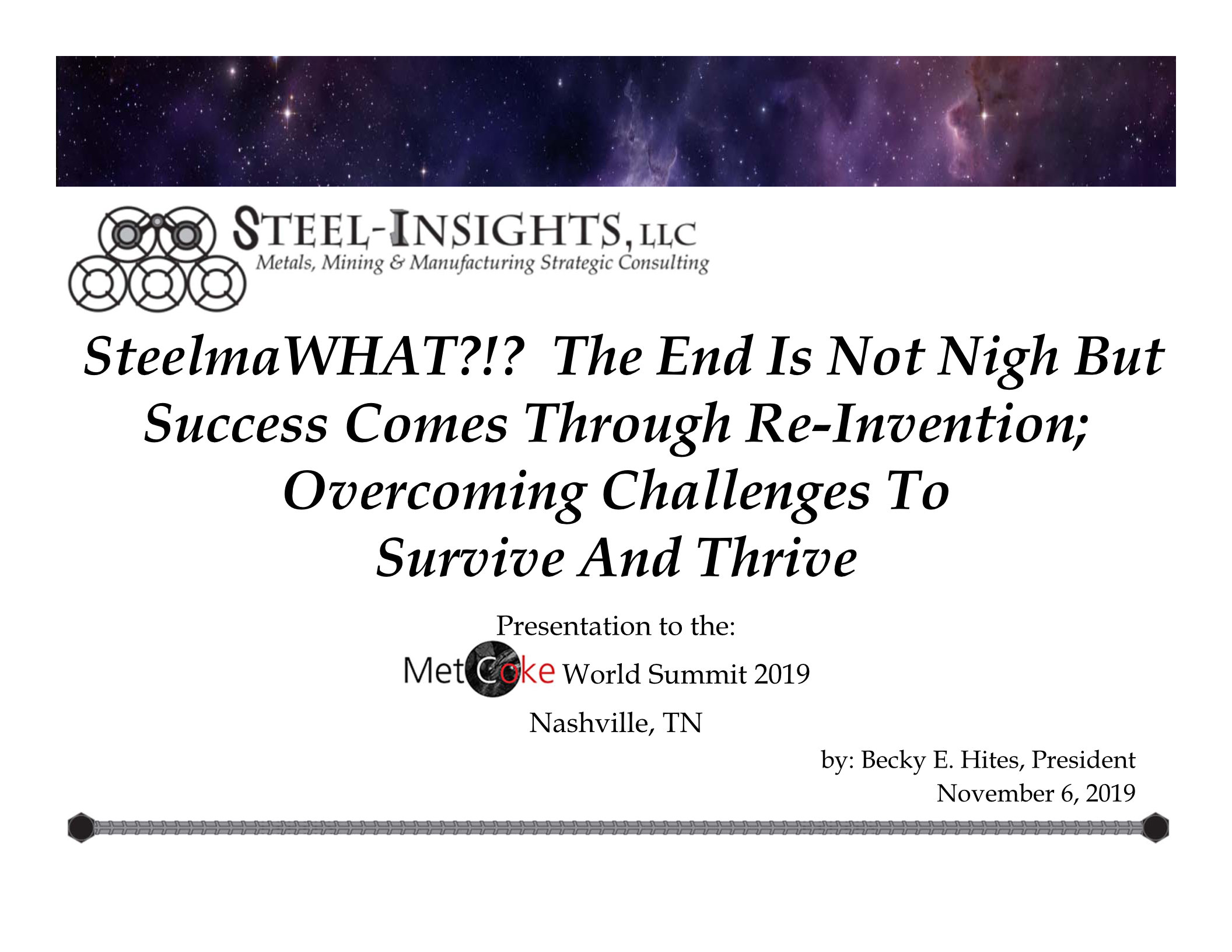 SteelmaWHAT?!? The End Is Not Nigh But Success Comes Through Re-Invention; Overcoming Challenges To Survive And Thrive, Met Coke World Summit 2019, Nashville, TN, Nov 2019