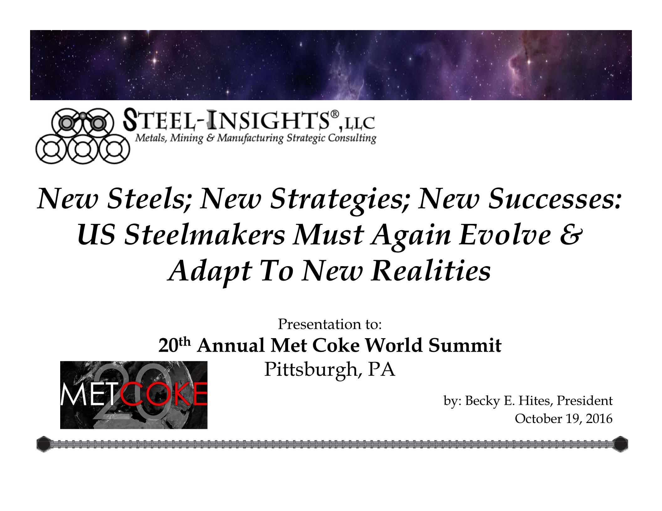 New Steels: New Strategies; New Successes: US Steelmakers Must Again Evolve & Adapt To New Realities, MetCoke, Pittsburgh, Oct 2016