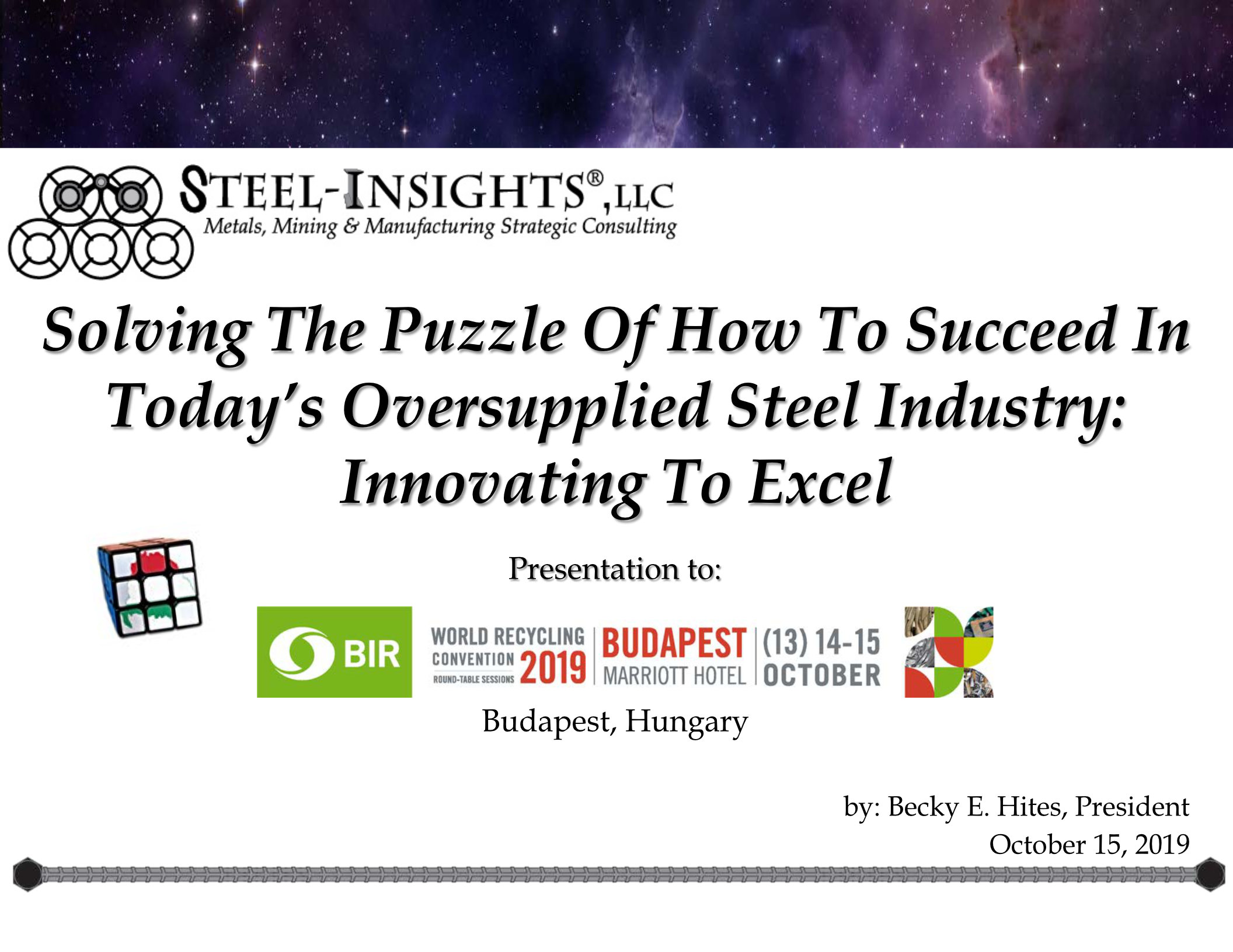 Solving The Puzzle Of How To Succeed In Today’s Oversupplied Steel Industry: Innovating To Excel, BIR World Recycling Convention, Budapest, Oct 2019