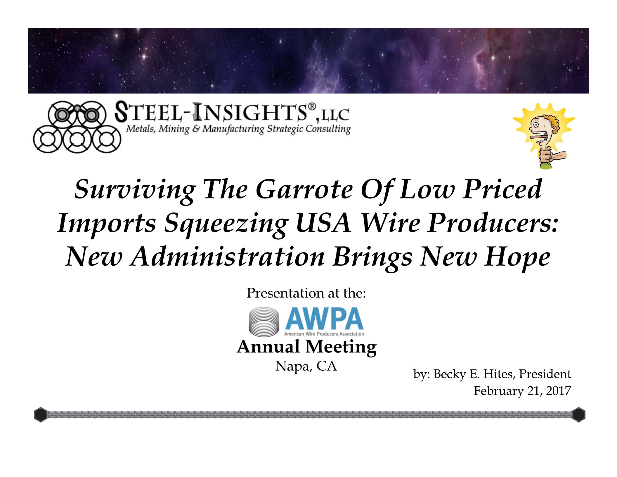 Surviving The Garrote Of Low Priced Imports Squeezing USA Wire Producers: New Administration Brings New Hope, AWPA, Napa, Feb 2017