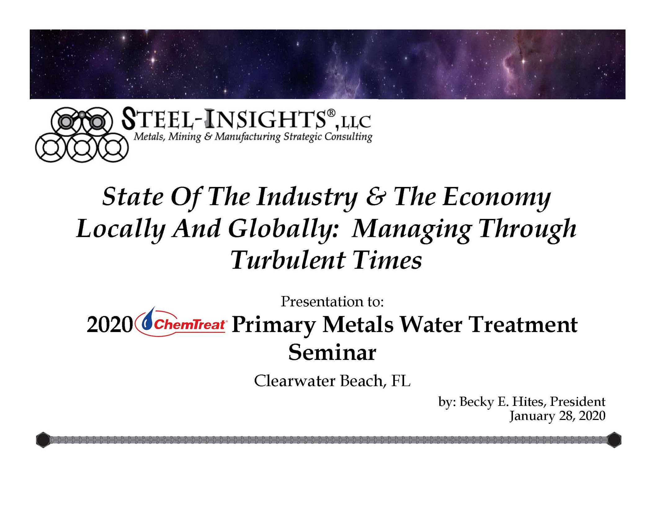 State Of The Industry & Economy Locally & Globally: Managing Through Turbulent Times, 2020 ChemTreat Primary Metals Water Treatment Seminar, Clearwater Beach, FL, Jan 2020